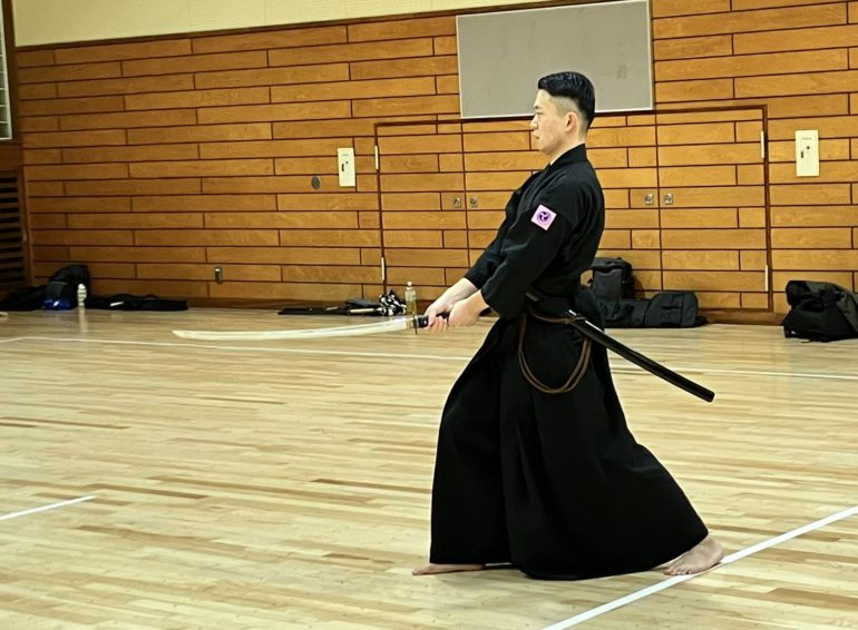同時に、歴史上の彼らと近づくには武の道に入っていく必要があるだろう、そう考えて居合道を始めたいと思い、剣新会調布場所に見学に行き、即入会の手続きを取りました。